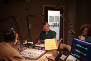 Real Stories MKE team in the studio. Sam Woods, Joel Dresang, and Kim Shine.